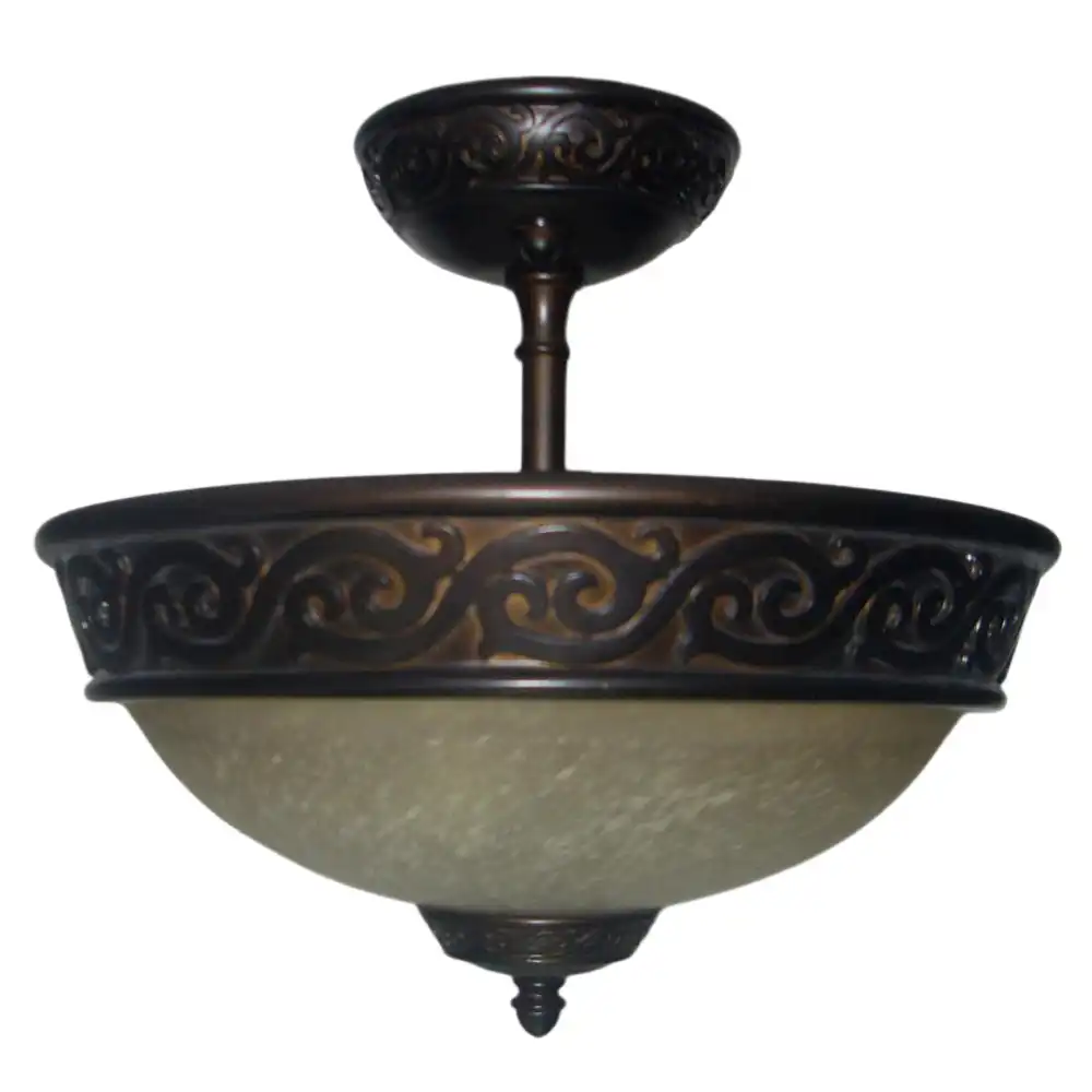 The Oiled Bronze 2-Light Semi-Flush Pendant Chandelier is a beautiful and elegant lighting fixture designed to add sophistication to any space. Crafted from high-strength metal, this pendant light features a sturdy and stable structure, ensuring it remains a long-lasting addition to your interior design. The fixture includes a circular canopy that connects to a vertical stem, which suspends two light holders arranged symmetrically.