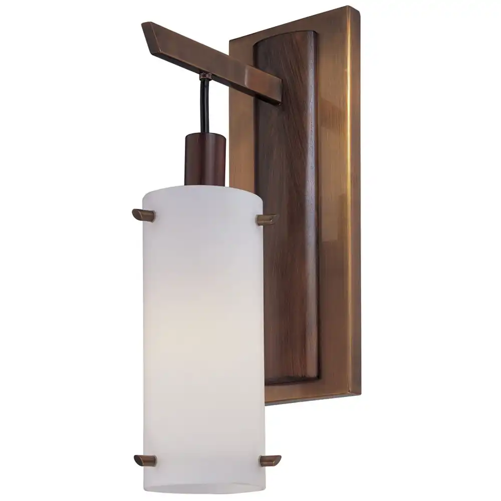 This single-light wall sconce is constructed from robust, high-strength metal, ensuring a stable structure that is built to withstand time and provide long-term compatibility. The distinguished bronzed iron finish offers a deep, rich brown tone with subtle metallic undertones, providing a warm, inviting, and sophisticated aesthetic that complements earthy palettes and natural materials. This durable finish, combined with the clean lines of the rectangular backplate and the uniquely angled support arm, and the prominent frosted cylinder glass shade held by small bronzed clips, creates an artistic and powerful presence. The frosted glass shade beautifully diffuses the light (bulb not included), creating a soft, ambient glow that is perfect for creating a serene and elegant atmosphere without harsh glare.