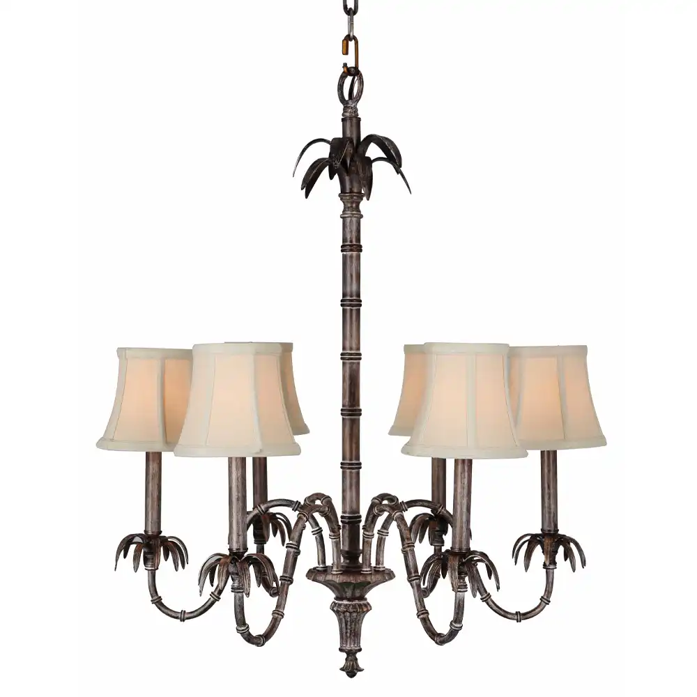 Design: Six gracefully curved arms with bamboo-inspired stems and sculptural leaf detailing