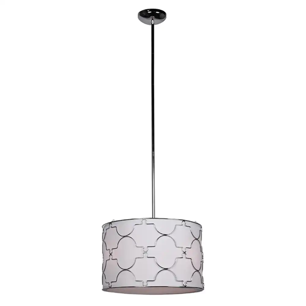 The Polished Chrome Geometric Drum 5-Light Pendant Light showcases the perfect balance of modern geometry and timeless elegance. Handcrafted from high-strength metal, the fixture features a meticulously welded drum-shaped outer frame with an interlocking quatrefoil pattern—a design celebrated for its sophisticated symmetry and decorative appeal.