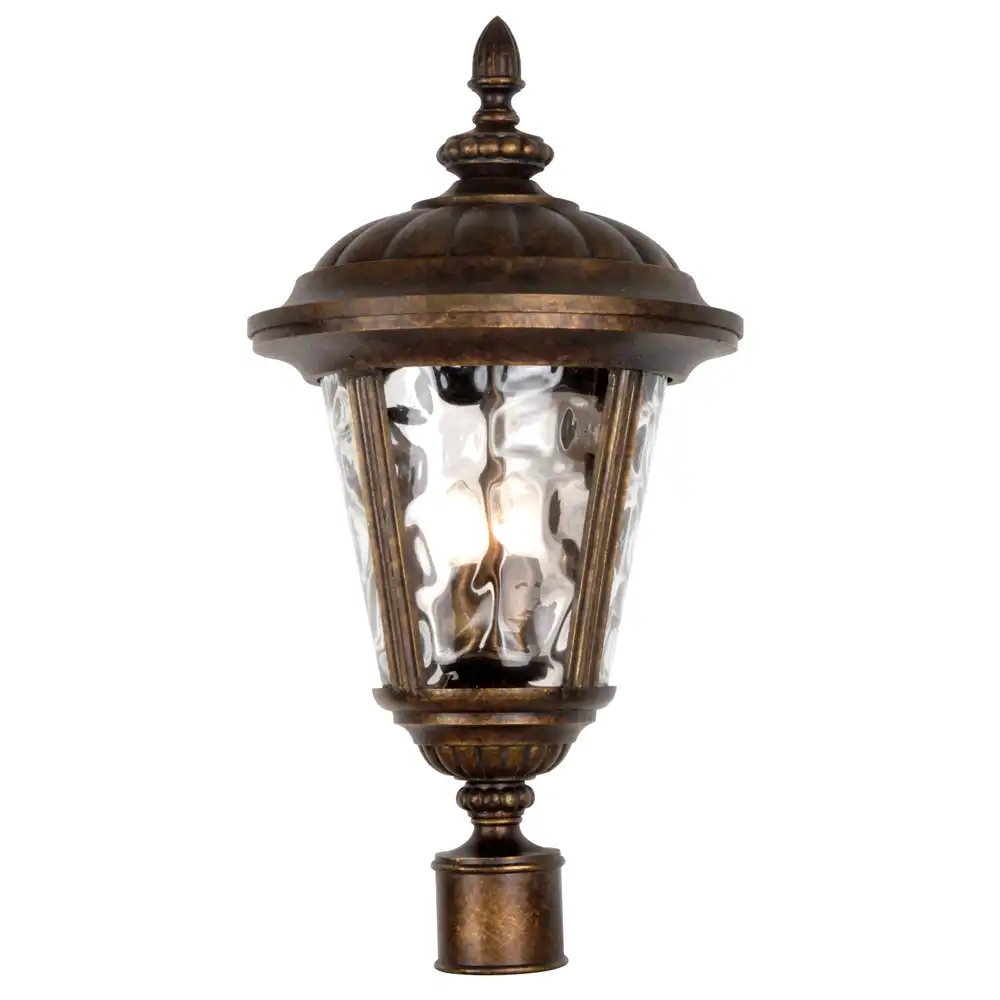 The lantern’s distinguished bronze finish, expertly applied, not only provides a rich, antiqued aesthetic but also offers enhanced durability against outdoor conditions. Featuring a stable structure, this fixture is built for long-term use, ensuring reliable performance and lasting beauty. The clear, textured glass panels beautifully diffuse the light from the four bulbs, creating a welcoming and secure ambiance while casting intriguing patterns. The decorative finial and fluted base details underscore the exquisite craftsmanship that goes into each piece.