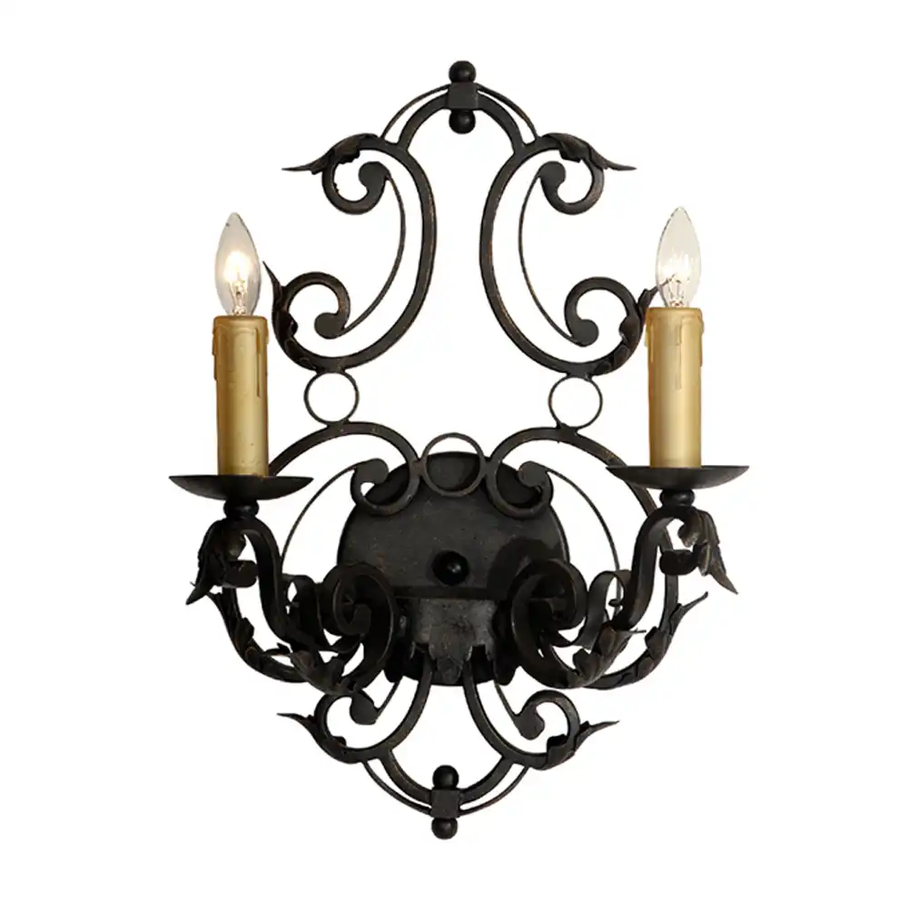 Introduce an air of old-world grandeur and robust charm to your home with our Regal Forged Black Iron & Candle 2-Light Wall Sconce. Meticulously handcrafted at our professional decorative light fixture factory in China, this exquisite piece embodies a profound understanding of classical, traditional, Gothic, and Mediterranean interior decoration, blending high-strength metal with intricate artistry. Designed for enduring beauty and long-term reliability, it’s an ideal selection for discerning designers and end-users seeking distinctive, artistic, and elegantly atmospheric lighting solutions.