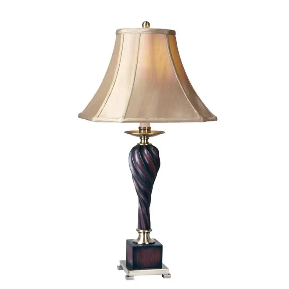 The Regal Twist Table Lamp blends timeless sophistication with artisanal craftsmanship, embodying the perfect balance between luxury materials and functional design. The lamp’s sculptural body features a solid wood column in a deep walnut finish, elegantly hand-carved with a twisting silhouette that conveys movement and grace. Accentuated with antique brass detailing and brushed metal fittings, the piece exudes warmth and refinement.
