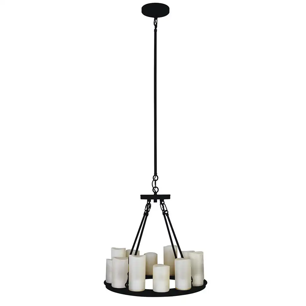 Design: Circular frame with 12 cylindrical candle-style glass shades for warm, ambient illumination.