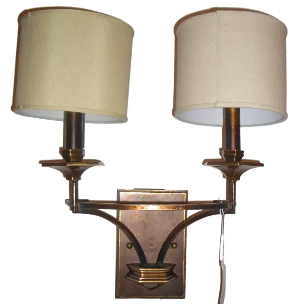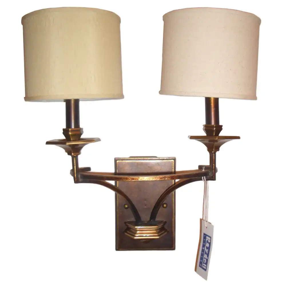 This two-light wall sconce is constructed from robust, high-strength metal, ensuring a stable structure that is built to withstand time and provide long-term compatibility. The distinguished aged brass finish offers a warm, antique metallic sheen, providing a sophisticated aesthetic that complements traditional decor and rich color palettes. This durable finish, combined with the ornate rectangular backplate featuring a decorative base, and the gracefully curved arms supporting the two prominent drum-shaped fabric shades, creates an artistic and welcoming presence. The fabric shades beautifully diffuse the light (bulbs not included), creating a soft, warm, and inviting ambient glow that is perfect for enhancing a serene and elegant atmosphere.