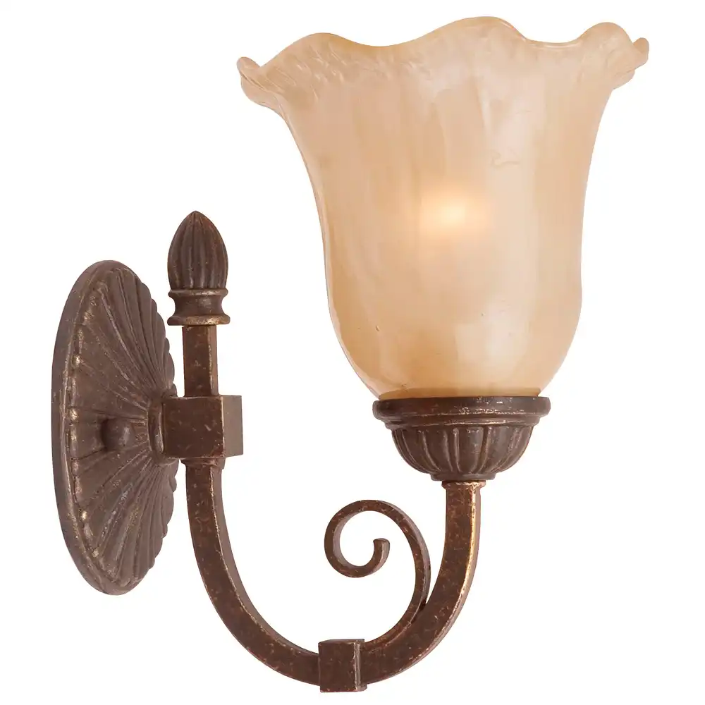Introduce a touch of inviting warmth and distinctive Old-World charm to your home with our Rustic Bloom Aged Bronze & Amber Fluted 1-Light Wall Sconce. Meticulously handcrafted at our professional decorative light fixture factory in China, this exquisite piece embodies a profound understanding of Tuscan, Mediterranean, rustic, and transitional interior decoration. It seamlessly blends high-strength metal with a beautifully aged finish and a soft, uniquely textured glass shade. Designed for enduring beauty and long-term reliability, it’s an ideal selection for discerning designers and end-users seeking unique, artistic, and elegantly atmospheric lighting solutions.