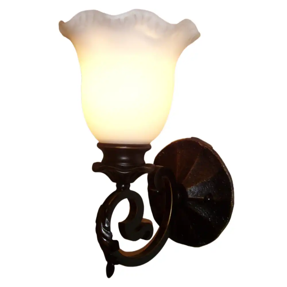 Introduce a touch of old-world charm and warm, inviting illumination to your interiors with our Rustic Scrolled Iron 1-Light Wall Sconce with Frosted Scalloped Glass. Meticulously handcrafted at our professional decorative light fixture factory in China, this exquisite wall lighting piece embodies a profound understanding of rustic, farmhouse, Tuscan, and traditional interior design. It seamlessly blends high-strength metal with a distinctive dark bronze/distressed iron finish and intricate scrolled ironwork, featuring a beautifully frosted, scalloped glass bell shade. Designed for enduring beauty, stability, and long-term reliability, it’s an ideal selection for discerning designers and end-users seeking distinctive, artistic, and functionally superior lighting solutions for hallways, dining areas, bedrooms, or any space desiring a sophisticated, historical accent.