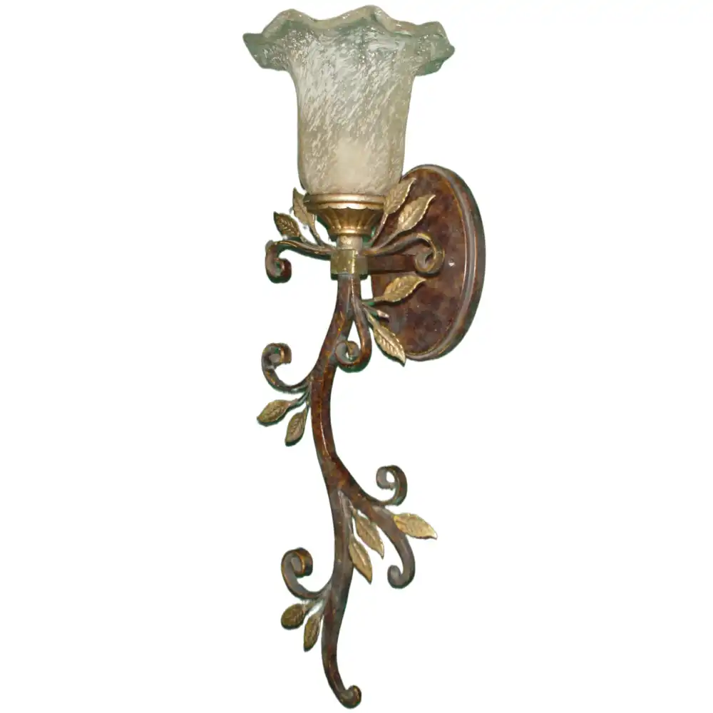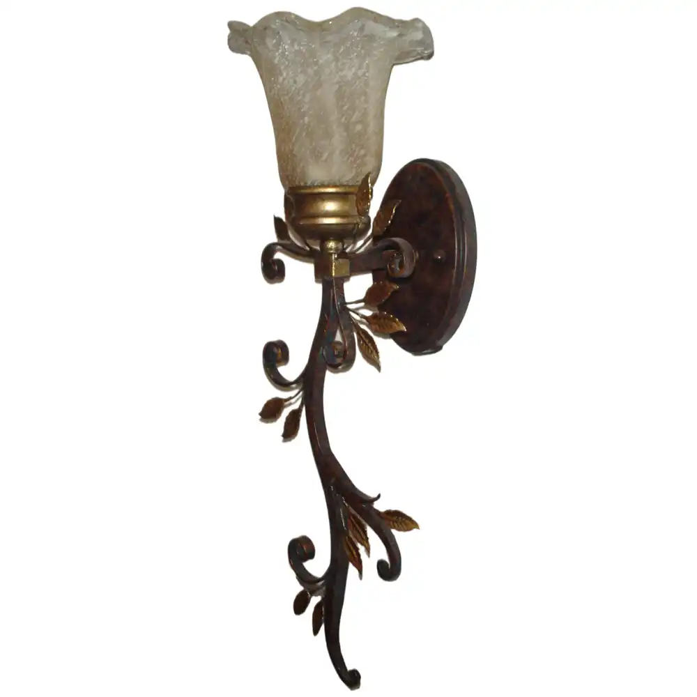 Introduce a touch of organic elegance and warm, inviting illumination to your interiors with our Rustic Vine Bronze & Gold 1-Light Wall Sconce with Scalloped Frosted Glass. Meticulously handcrafted at our professional decorative light fixture factory in China, this exquisite wall lighting piece embodies a profound understanding of natural, traditional, rustic, and transitional interior design. It seamlessly blends high-strength metal with a rich hand-applied bronze finish accented with delicate gold leaf foliage, creating a beautiful vine-like structure supporting a beautifully frosted, scalloped-edge bell-shaped glass shade. Designed for enduring beauty, stability, and long-term reliability, it’s an ideal selection for discerning designers and end-users seeking distinctive, artistic, and functionally superior lighting solutions for hallways, bedrooms, entryways, or any space desiring a sophisticated, nature-inspired accent.