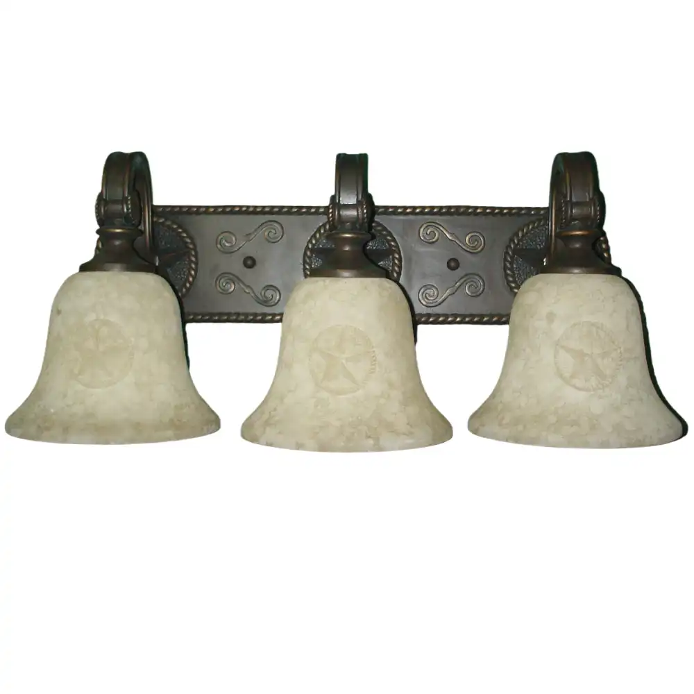 Texas Ranger Bronze 3-Light Vanity Light with Star-Etched Alabaster Glass