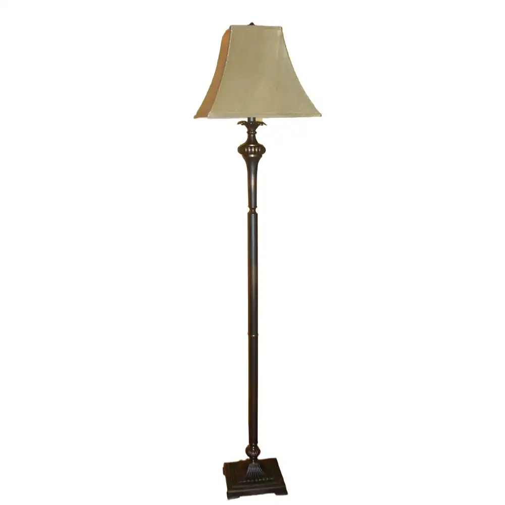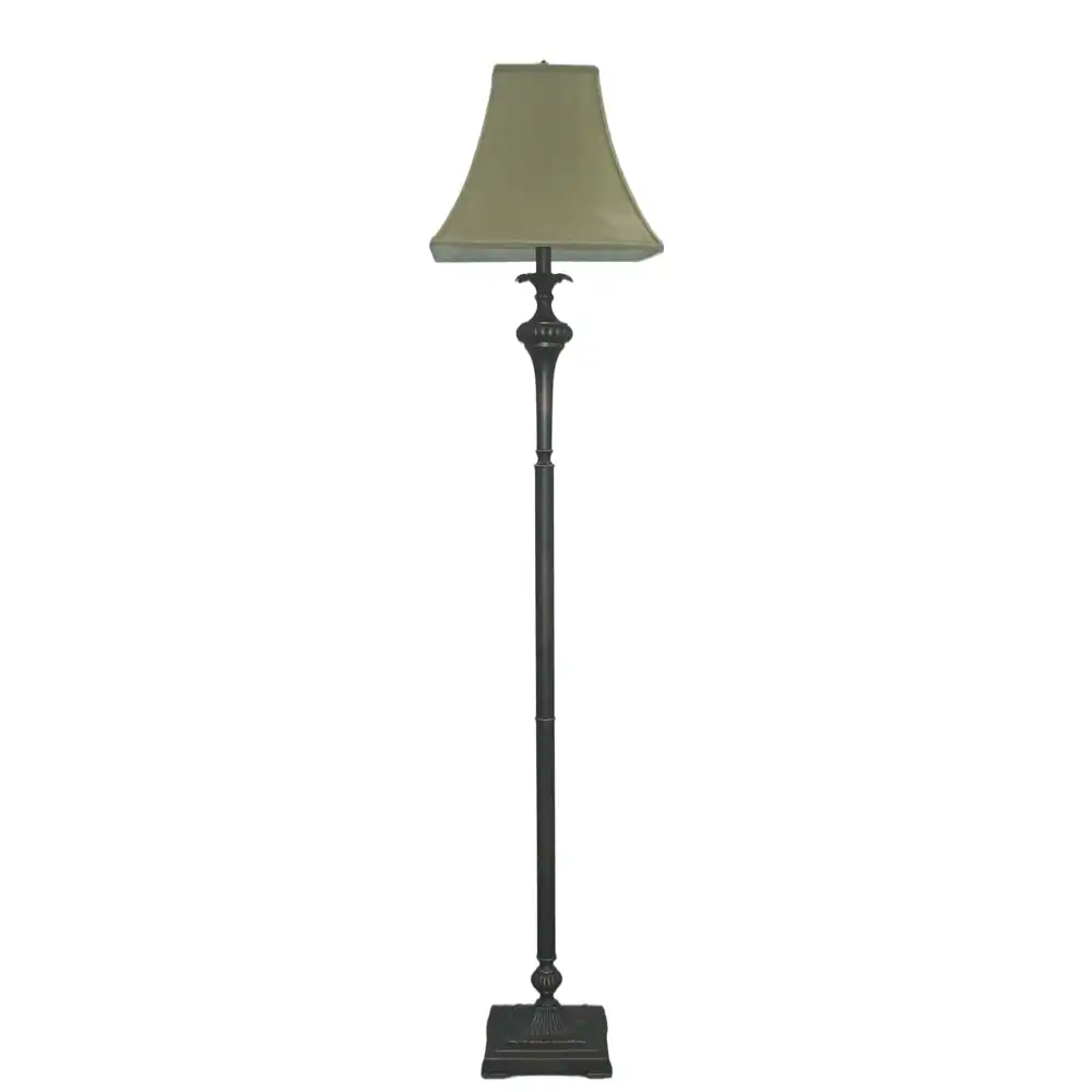 The lamp’s impressive height and elegant silhouette are crafted entirely from high-strength metal, boasting a rich, dark bronze or oil-rubbed bronze finish. This deep, burnished tone evokes a sense of antique gravitas and complements a wide range of décor styles, from stately libraries to transitional living rooms. The slender, turned column features subtle but refined detailing, characteristic of fine European furnishings, and is anchored by a substantial square base with fluted or reeded detailing. This robust construction ensures an exceptionally stable structure and long-term durability, compatible with years of consistent enjoyment.