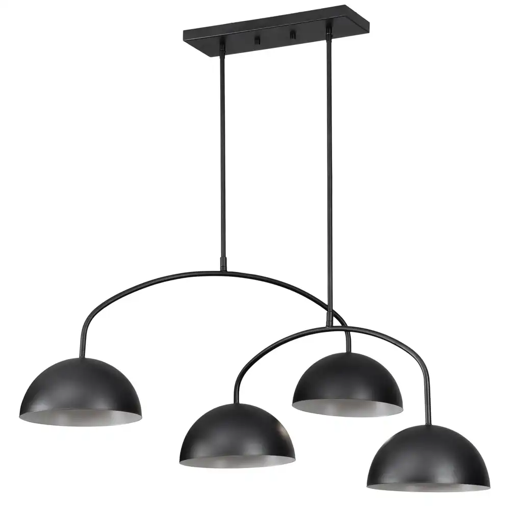 Illuminate your contemporary spaces with the elegant and purposeful design of the “Arcadian” 4-Light Modern Linear Island Pendant. This meticulously handcrafted fixture is constructed from high-strength metal, showcasing a sleek Matte Black finish. This finish offers a sophisticated, non-reflective aesthetic that provides a bold, contemporary edge and sharp definition to any interior. The interior of each dome shade is finished in a contrasting lighter tone (likely white or brushed silver, for optimal light reflection), enhancing the downward illumination. The inherently stable structure and robust construction ensure long-term durability and consistent performance, making it an ideal choice for modern commercial environments, sophisticated residential kitchens, or minimalist hospitality venues where clean lines and lasting quality are desired.
