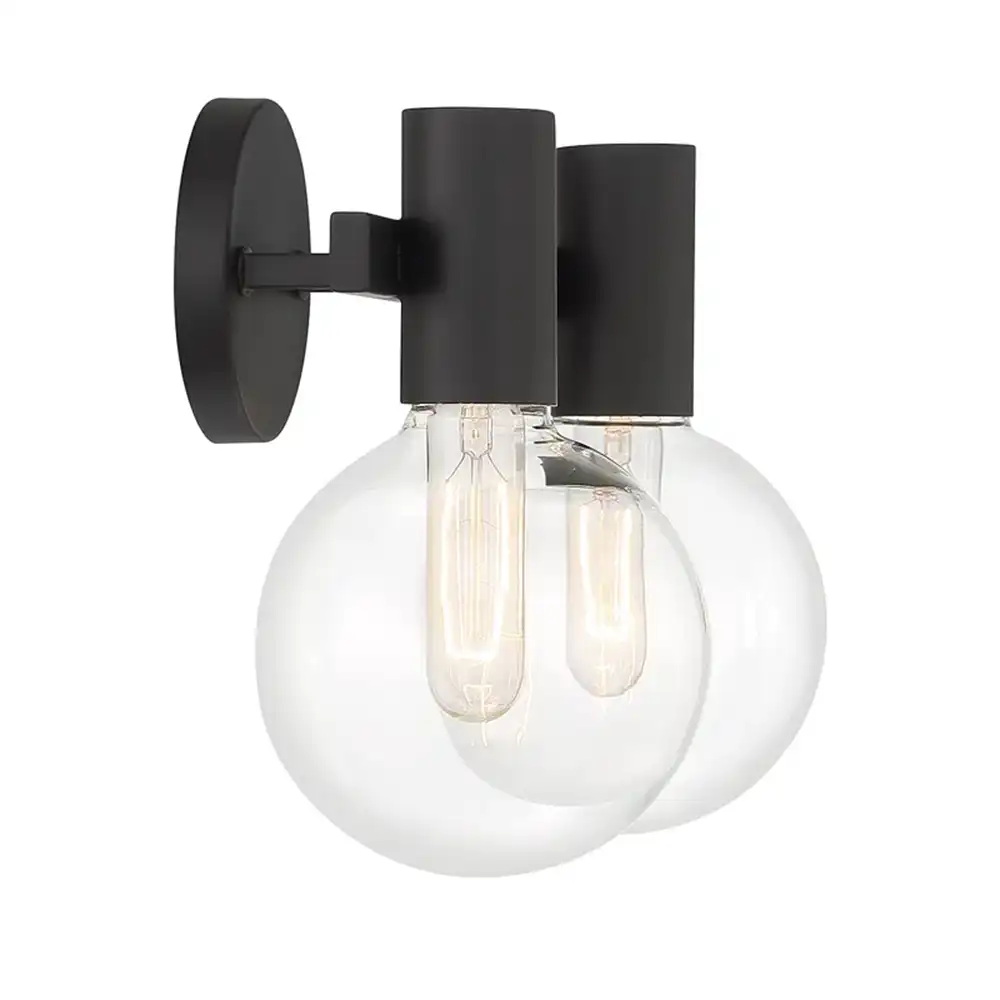 - Bright, Unobstructed Illumination: Two clear glass globe shades maximize light output, ideal for comprehensive task lighting over vanities or brightening rooms, and beautifully display decorative bulbs.