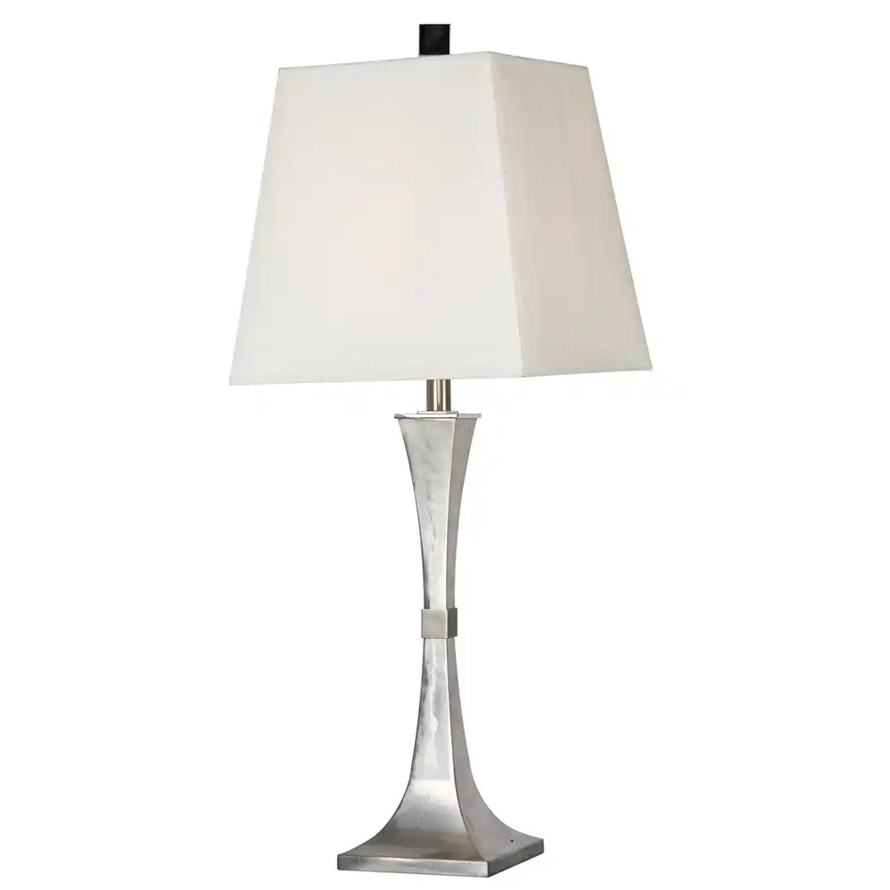 The lamp’s striking base is forged from high-strength metal, ensuring a remarkably stable structure and exceptional durability for long-term use. Its defining feature is the gracefully tapered, hourglass silhouette, which broadens at both the base and top, cinching elegantly in the middle where it’s accented by a refined band. The finish is a sophisticated brushed nickel or satin silver, offering a muted yet luminous sheen that adds depth without overwhelming shine. This refined texture accentuates the lamp’s clean lines and modern form.