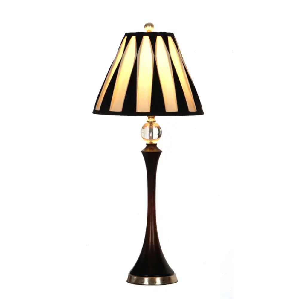 The lamp’s elegant central body features a gracefully tapered hourglass silhouette, crafted from high-strength metal and finished in a deep, lustrous dark bronze or rich espresso. This rich, dark base provides a striking foundation, beautifully contrasted by a luminous clear crystal orb accentuating the narrowest point of the hourglass, just beneath the shade. This precisely cut crystal element catches and refracts light, adding a touch of brilliant sparkle and underscoring the lamp’s commitment to high-quality materials and exquisite craftsmanship.