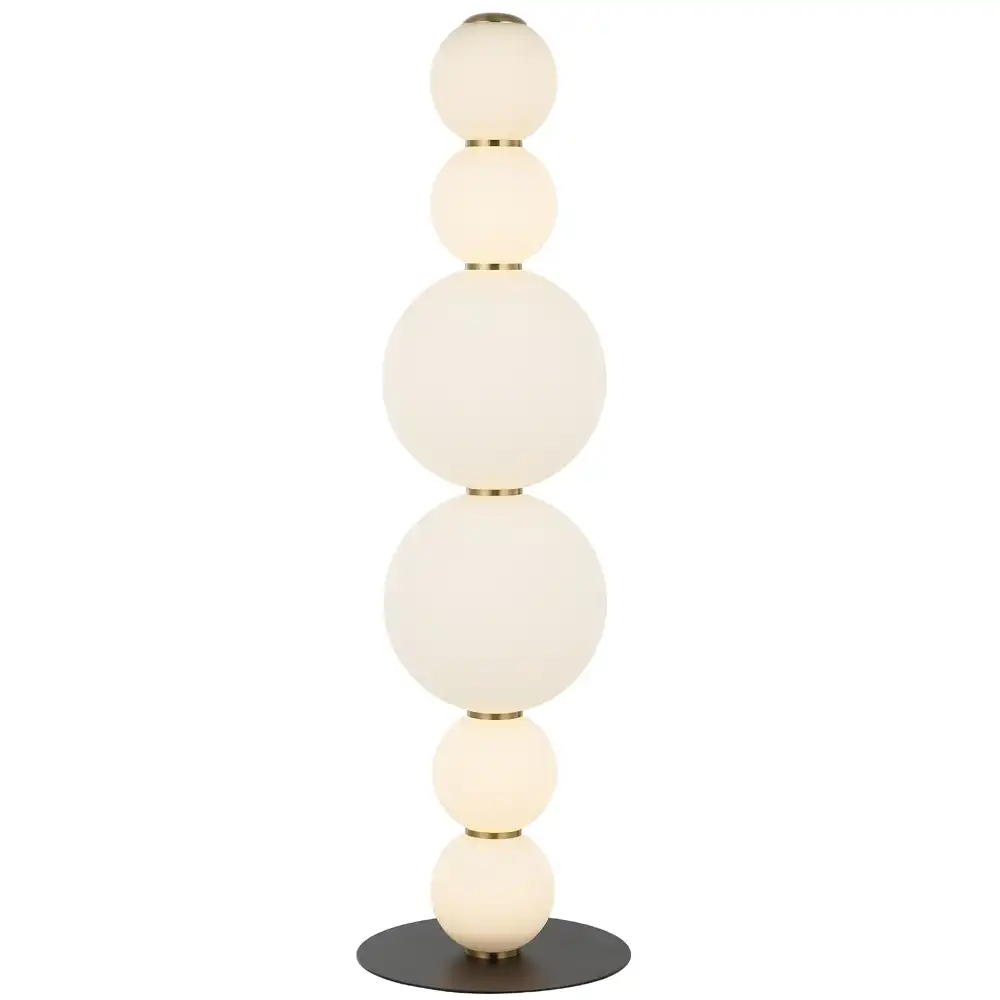 The lamp’s most striking feature is its dynamic vertical arrangement of multiple, varying-sized opal glass diffusers. These perfectly rounded, luminous spheres ascend in a captivating “cascade” effect, each emitting a soft, diffused glow that creates a serene and inviting ambiance. Each glass orb is gracefully separated by slender polished golden-finished metal rings, providing a luxurious visual accent that beautifully complements the milky white glass. The entire sculptural stack is securely anchored by a sophisticated matte black metal disc base, which offers both unwavering stability and a modern, grounded contrast. Integrated within each sphere is energy-efficient LED lighting, promising consistent, high-quality illumination while ensuring minimal power consumption. This profound understanding of harmonious proportion, premium material synergy, and advanced LED technology reflects our commitment to exquisite craftsmanship and innovative interior solutions.