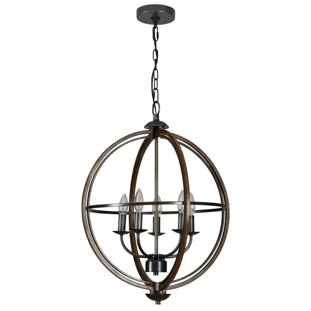 The “Celestial” pendant features an intriguing open-orb design, created by intersecting metal bands that encase a five-light candelabra cluster (bulbs not included). This airy, sculptural form not only maximizes light dispersion, casting an inviting glow throughout the space, but also serves as a striking focal point without overwhelming the room. The open design facilitates effortless bulb replacement and simplified cleaning, contributing to a superior end-user experience. Ideal for making a grand statement over dining tables, in entryways, or in high-ceilinged living areas, this fixture seamlessly blends industrial appeal with rustic charm, achieved entirely through expert metalwork.