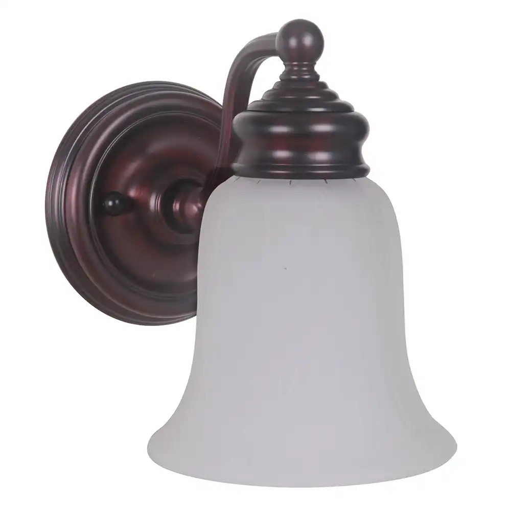 Finish: The metal components feature a rich Oil-Rubbed Bronze finish with subtle reddish undertones (customizable upon request), providing a classic and sophisticated look that enhances its traditional appeal. This finish beautifully complements the soft, ethereal glow diffused by the frosted bell-shaped glass shade, creating a harmonious and inviting aesthetic.