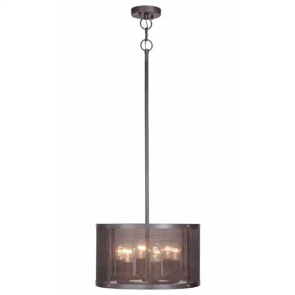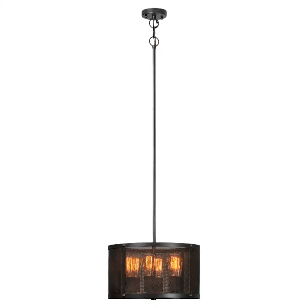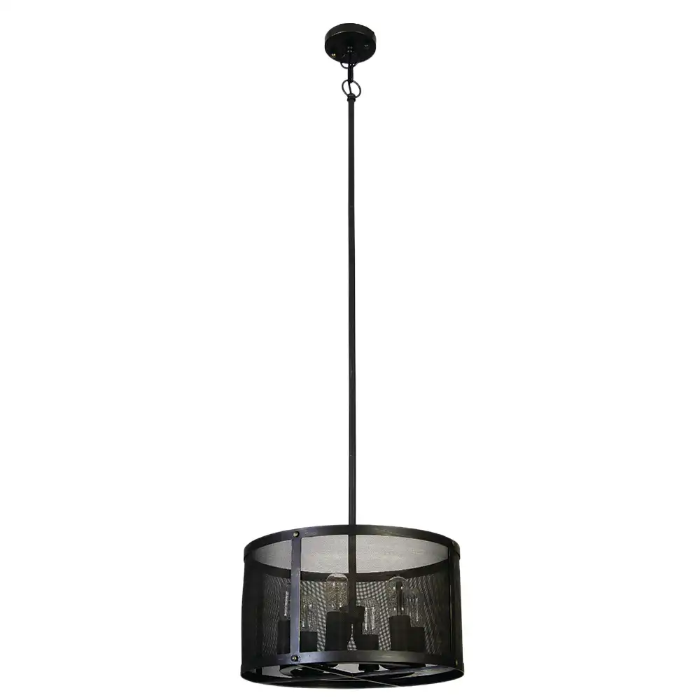 The main body of the pendant features a sleek drum silhouette, entirely enveloped by a fine metal mesh screen. This unique mesh design softens the direct glare of the bulbs while allowing abundant light to diffuse into the room, creating an inviting and well-lit atmosphere. Within this innovative enclosure, six exposed light sources are thoughtfully arranged, designed to showcase vintage-style Edison bulbs (not included, but recommended for optimal aesthetic), further enhancing the fixture’s industrial charm and visual appeal.