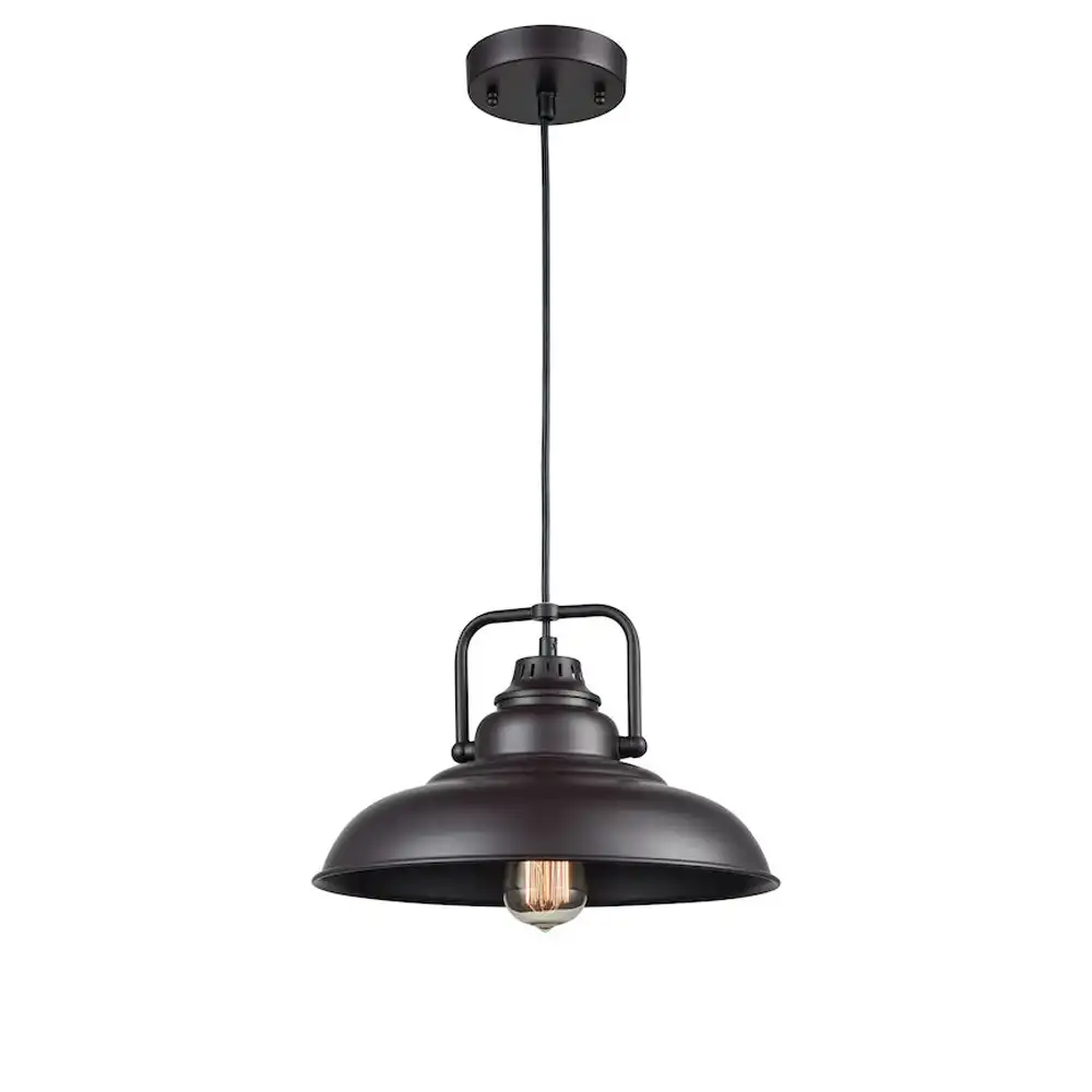 The distinguishing feature of this pendant is its rich matte black finish with subtle charcoal undertones. This sophisticated, non-reflective coating provides a rugged yet refined appearance, evoking the classic charm of vintage barn lights while seamlessly integrating into modern industrial or rustic-chic interiors. The finish enhances the fixture’s robust silhouette, which features a classic dome shade suspended by a distinctive yoke and sturdy ring details, culminating in an exposed Edison-style bulb (not included) that completes its authentic appeal.