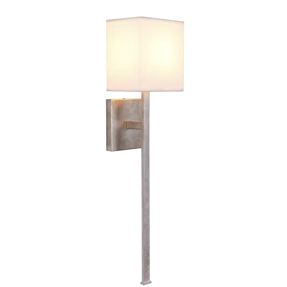 Constructed entirely from high-strength metal, its stable structure ensures exceptional durability and reliable performance for long-term use in both residential and high-end commercial applications. The unadorned rectangular backplate, coupled with a prominent, extended vertical arm that supports a tapered square fabric shade, reflects meticulous craftsmanship and a profound understanding of modern decorative light fixture design. The fabric shade diffuses light beautifully, providing a soft, ambient glow that enhances comfort and adds a layer of sophisticated warmth to any room, drawing the eye upward and emphasizing verticality.