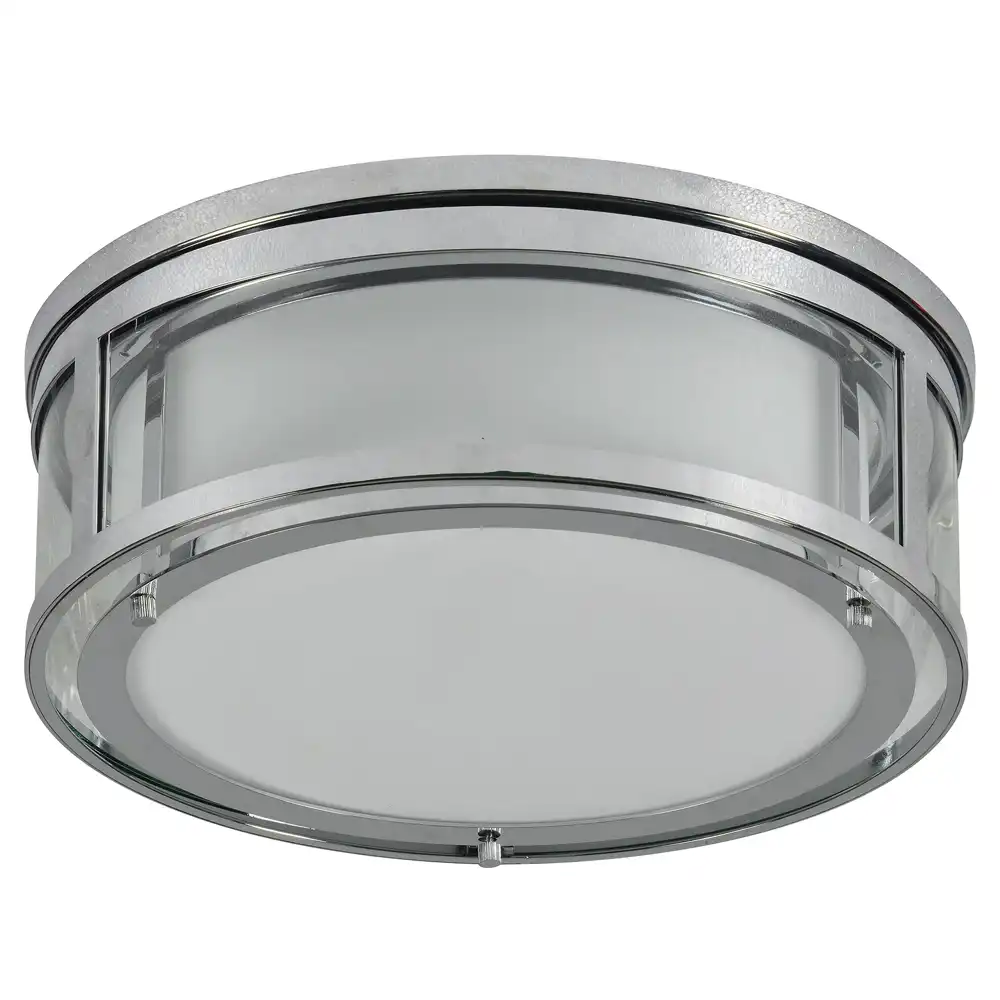 The “Luminesce” flush mount features a distinctive layered design, combining a clear glass outer ring with an inner frosted or etched glass diffuser. This dual-layer approach elegantly conceals three light sources (bulbs not included) while ensuring a soft, evenly diffused ambient light that eliminates harsh glares. This thoughtful design not only enhances the visual comfort for the end-user but also simplifies maintenance by protecting the internal components. Its low-profile nature makes it perfect for rooms with standard or lower ceilings, providing ample illumination without intruding on the vertical space. Ideal for hallways, bedrooms, kitchens, or offices, this fixture offers a seamless blend of modern aesthetics and practical functionality.