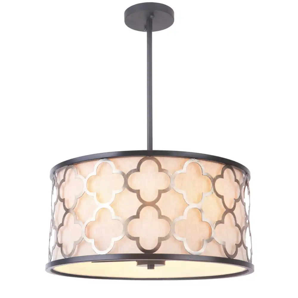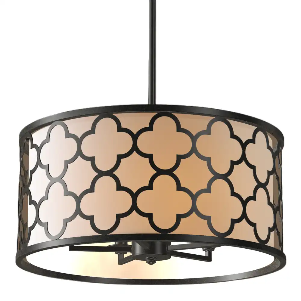 - Distinctive Moroccan-Inspired Design: A classic drum pendant with an intricate quatrefoil (trellis) metal overlay, evoking exotic charm.