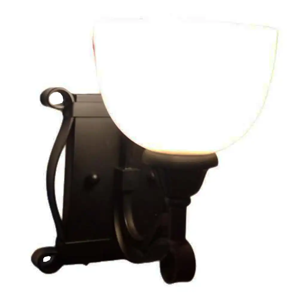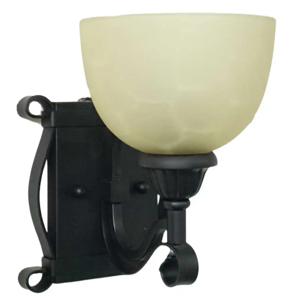 Handcrafted 1-light wall sconce with ornate metalwork in oil-rubbed bronze/matte black and an alabaster/frosted glass bowl shade. Features high-strength construction for a warm, transitional look. Customizable for B2B/OEM/ODM.