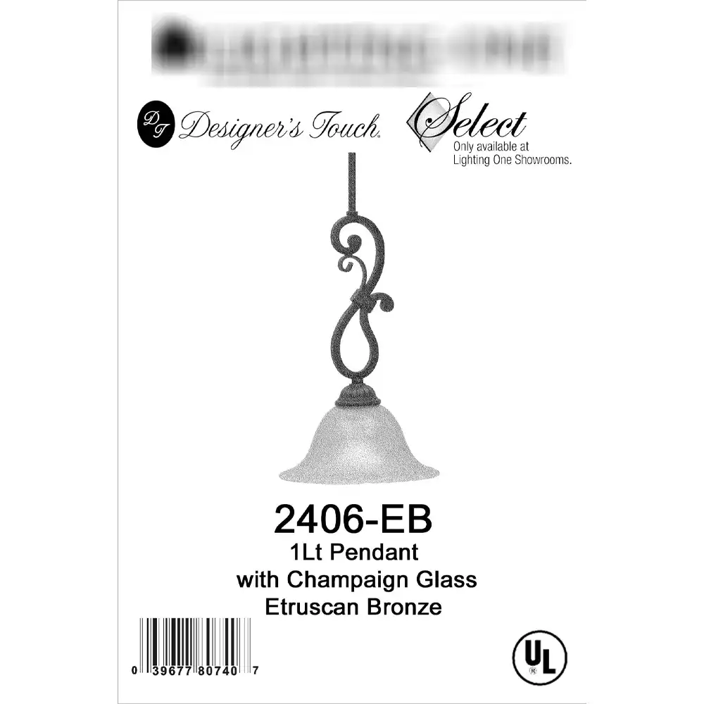 The pendant features our signature Etruscan Bronze finish, a rich and evocative treatment characterized by deep reddish-brown undertones peeking through a darker bronze base, with subtle antiquing that accentuates every curve and detail of the metalwork. This multi-layered finish provides an authentic, aged look, reminiscent of classic Mediterranean artistry. Adorning the bottom is a beautifully crafted Champagne glass lampshade. This gently fluted, bell-shaped shade boasts a warm, translucent hue, diffusing the light softly to create an inviting, ambient glow that enhances comfort and sophistication. A delicate, hand-forged metal scroll detail gracefully connects the stem to the shade, adding a touch of bespoke artistry.