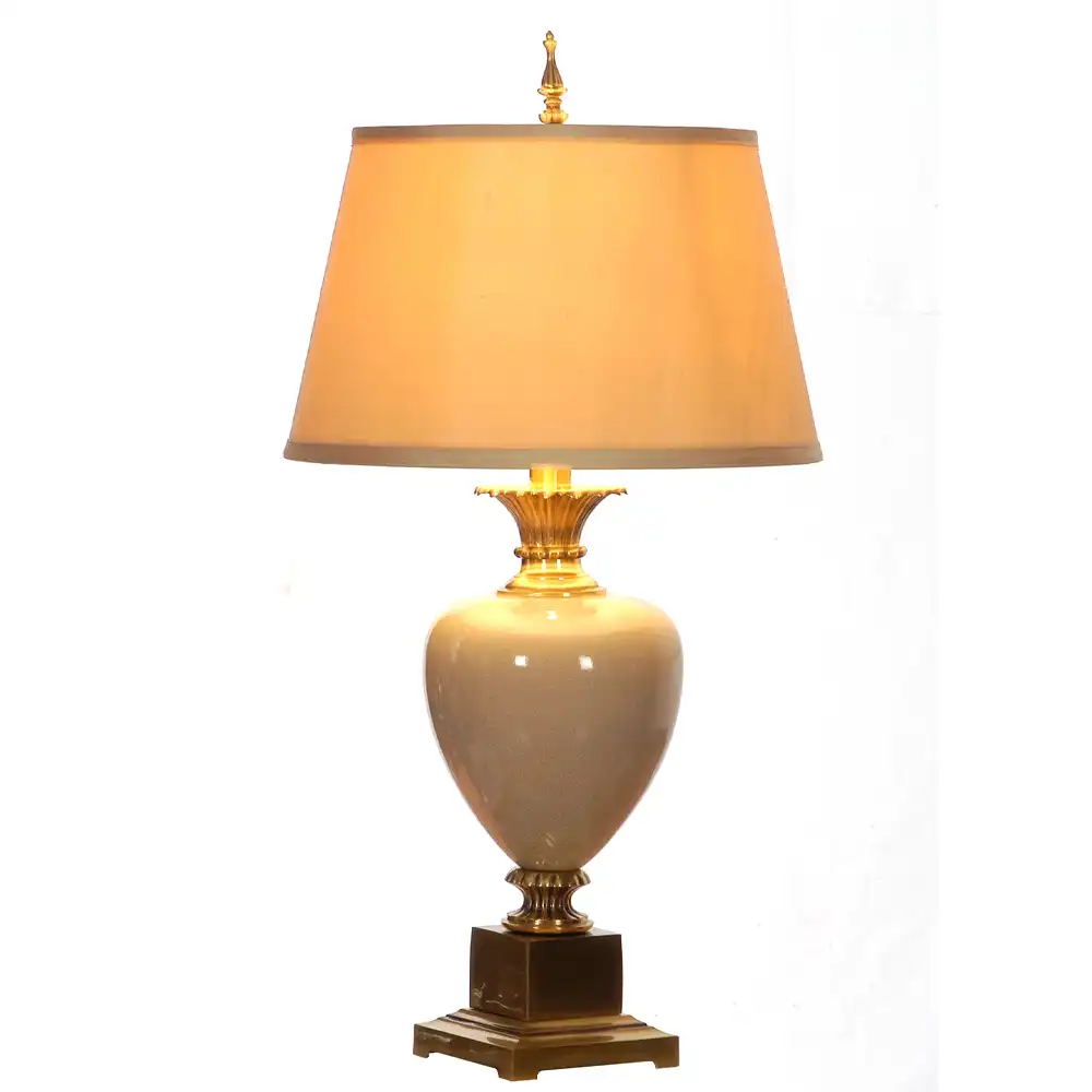 The robust construction ensures a stable structure and exceptional long-term durability, fulfilling your commitment to quality. The lamp is completed with a classic, gently tapered fabric shade in a warm, neutral cream or champagne tone. This premium textile shade diffuses light with a soft, inviting glow, creating an ambiance of refined comfort, perfect for a welcoming console table, an elegant living room, or a distinguished bedside setting. The combination of brilliant crystal and warm brass reflects a profound understanding of interior decoration, where superior materials achieve unparalleled aesthetic impact.