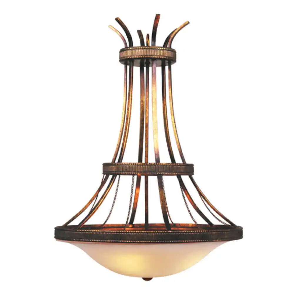 - Soft, Diffused Illumination: Large inverted frosted alabaster glass bowl provides even, warm light from 4 internal bulbs.