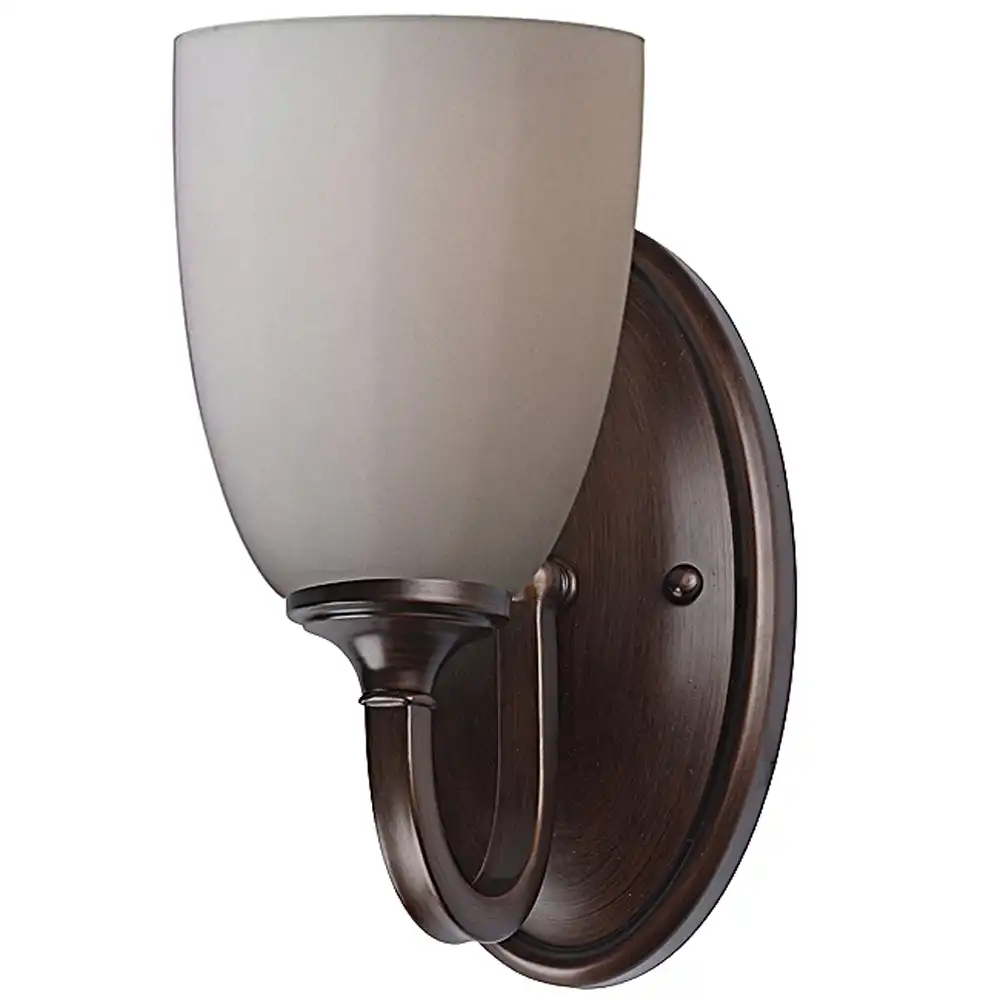 This single-light wall sconce is constructed from robust, high-strength metal, ensuring a stable structure that is built to withstand time and provide long-term compatibility. The distinguished hand-applied dark bronze finish offers a deep, rich brown with subtle metallic undertones that brings a classic and sophisticated touch to any room, beautifully complementing a wide range of color palettes and textures. This durable finish, combined with the clean lines of the oval backplate, a sleek curved arm, and a prominent bell-shaped opal glass shade (bulb not included), creates an artistic and welcoming presence. The beautifully shaped opal glass shade perfectly diffuses the light, creating a gentle, luminous, and inviting ambient glow that is perfect for enhancing a chic and stylish atmosphere with minimalist elegance.