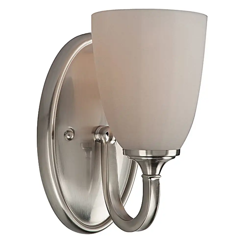 Transitional Brushed Nickel 1-Light Wall Sconce with Opal Glass Shade