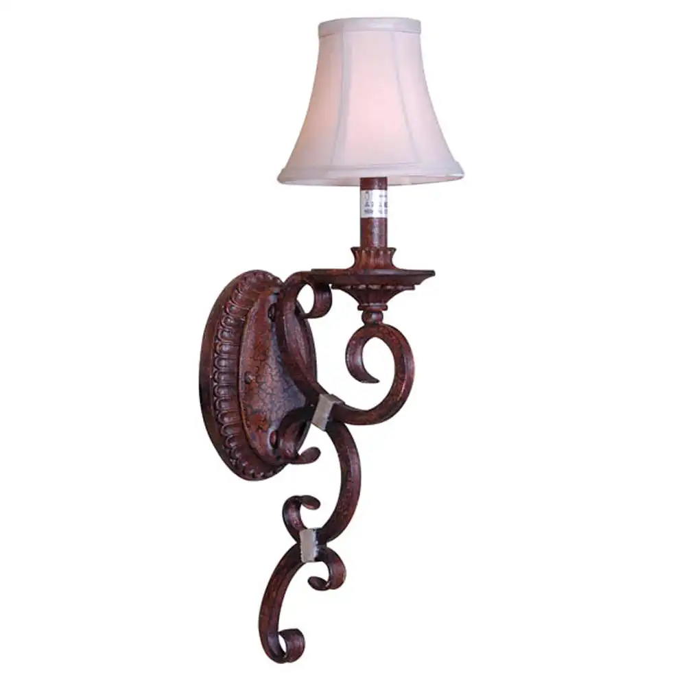 Introduce a touch of old-world charm and warm, inviting illumination to your interiors with our Tuscan Scroll Bronze 1-Light Wall Sconce with Cream Bell Shade. Meticulously handcrafted at our professional decorative light fixture factory in China, this exquisite wall lighting piece embodies a profound understanding of traditional, rustic, Tuscan, and transitional interior design. It seamlessly blends high-strength metal with a rich hand-applied distressed bronze finish and an elaborate scrolled ironwork design, featuring a classic cream fabric bell-shaped shade. Designed for enduring beauty, stability, and long-term reliability, it’s an ideal selection for discerning designers and end-users seeking distinctive, artistic, and functionally superior lighting solutions for hallways, dining areas, bedrooms, or any space desiring a sophisticated, historical accent.