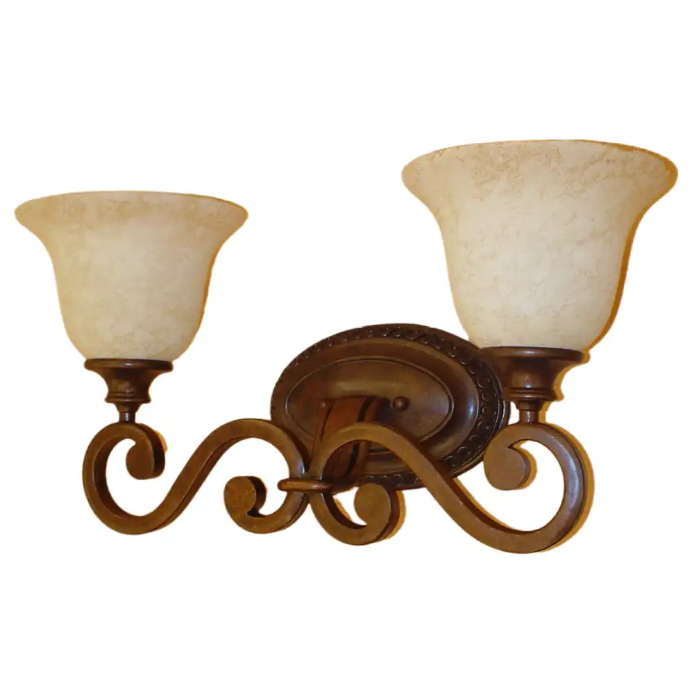 Introduce a touch of old-world charm and warm, inviting illumination to your interiors with our Tuscan Vineyard Bronze 2-Light Wall Sconce with Alabaster Glass. Meticulously handcrafted at our professional decorative light fixture factory in China, this exquisite wall lighting piece embodies a profound understanding of traditional, rustic, Tuscan, and transitional interior design. It seamlessly blends high-strength metal with a rich hand-applied distressed bronze finish and elegant scrolled arms, topped with two distinctive alabaster-style frosted glass bell shades. Designed for enduring beauty, stability, and long-term reliability, it’s an ideal selection for discerning designers and end-users seeking distinctive, artistic, and functionally superior lighting solutions for hallways, dining rooms, bedrooms, or any space desiring a sophisticated, warm accent.