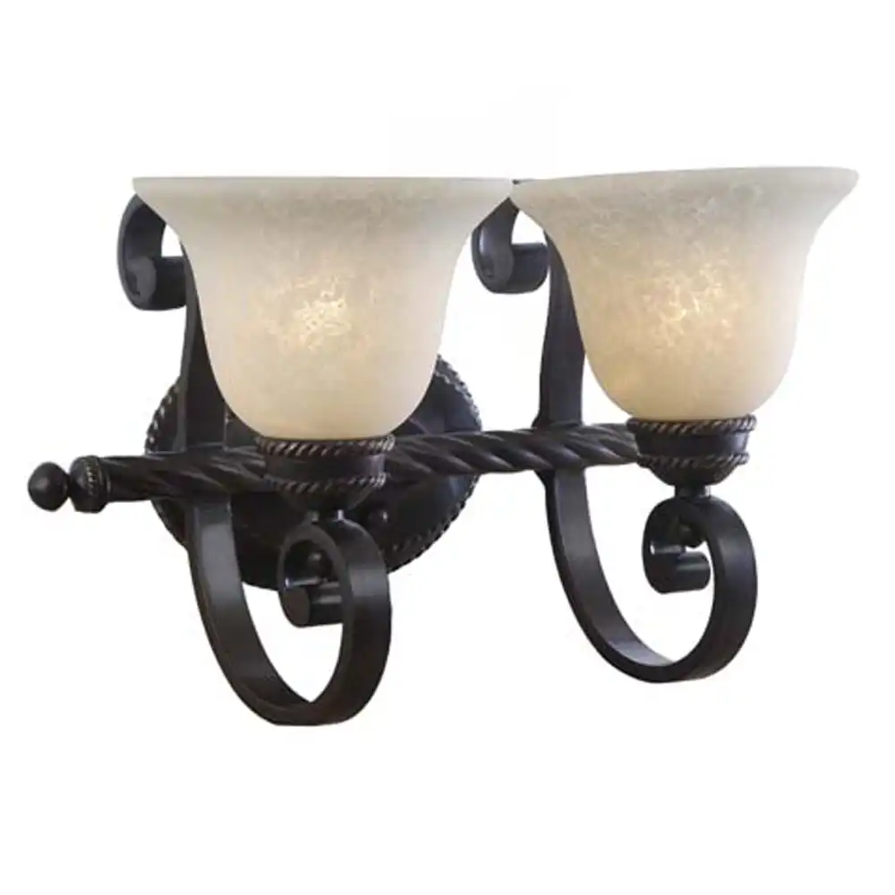 Introduce a touch of enduring Tuscan charm and warm, inviting illumination to your interiors with our Tuscan Vineyard Forged Iron 2-Light Vanity Light with Scrolled Arms & Alabaster Glass. Meticulously handcrafted at our professional decorative light fixture factory in China, this exquisite wall lighting piece embodies a profound understanding of traditional, Tuscan, Mediterranean, and rustic-elegant interior design. It seamlessly blends high-strength metal with a rich forged iron finish and two beautifully variegated alabaster-style glass bell shades. Designed for enduring beauty, stability, and long-term reliability, it’s an ideal selection for discerning designers and end-users seeking distinctive, artistic, and functionally superior lighting solutions for bathrooms, powder rooms, or accent lighting in hallways.
