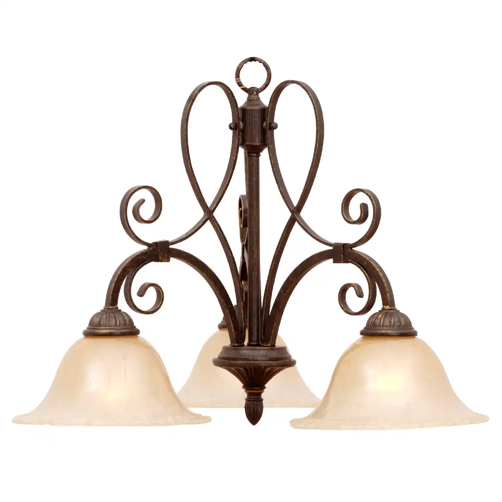 The Tuscany Etruscan Bronze 3-Light Pendant showcases a timeless expression of classic European artistry blended with refined handcrafted metalwork. This fixture features a sculptural, symmetrical design of elegantly curved wrought metal arms, finished in a rich Etruscan Bronze patina — a deep, hand-applied bronze tone subtly accented with warm gold highlights and a softly weathered texture. This artisanal finish evokes the warmth and sophistication of Tuscan-inspired interiors, offering both visual depth and a sense of timeless luxury.