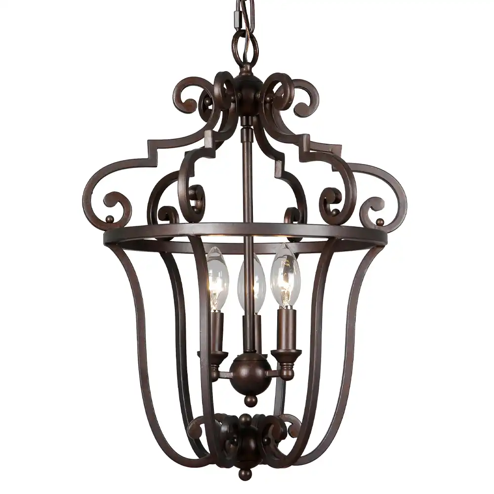 The Verona 3-Light Lantern Chandelier reflects the perfect union of classic European artistry and modern structural balance. Handcrafted from high-strength wrought metal, this fixture is finished in a hand-applied Espresso Bronze, a deep brown tone enriched with subtle copper and chestnut undertones. The surface has a gentle satin sheen with light brush accents, giving it a warm, time-honored character that evokes vintage refinement without appearing rustic.