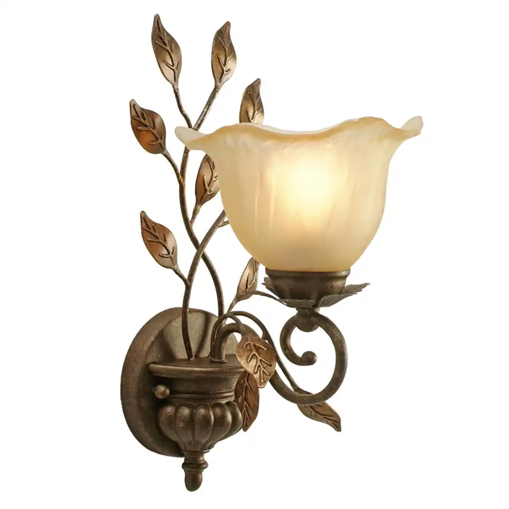 Elevate your interior spaces with the exquisite “Vineyard Bloom” Wall Sconce, a testament to timeless design and superior craftsmanship. This stunning 1-light fixture, meticulously handcrafted from high-strength metal, embodies a blend of classic charm and enduring quality. Inspired by the natural elegance of a flourishing vineyard, its intricate leaf and vine detailing in a rich bronze finish create a warm, inviting ambiance that complements a variety of decor styles, from rustic to traditional and transitional.