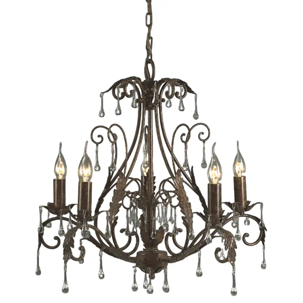 The Vintage Leaf 5-Light Chandelier is a graceful blend of classical European design and meticulous craftsmanship. Constructed from premium high-strength metal, this chandelier is finished in a rustic bronze patina with subtle weathered textures, giving it an antique yet timeless appearance.